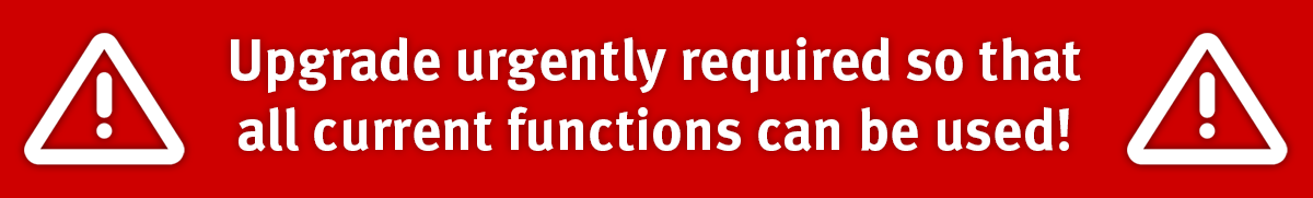 An upgrade to the current version is urgently required so that you can use all functions to their full extent! For your security and the security of your data, we therefore offer you this exclusive upgrade at the best price.